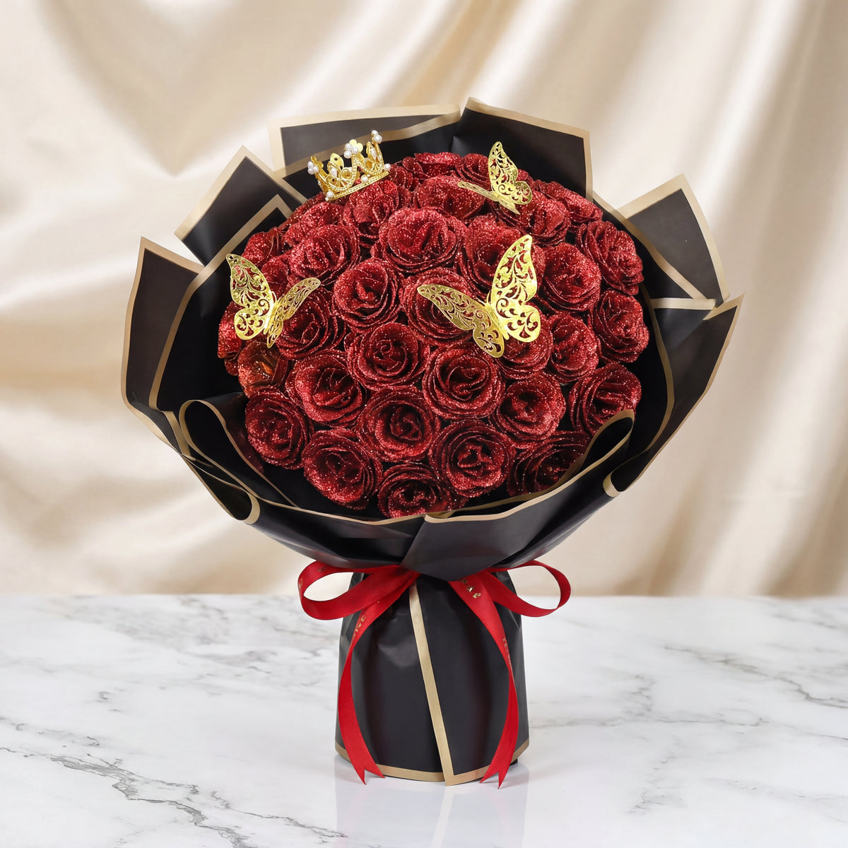 Our sparkling, everlasting blooms outshine perishable bouquets and flat artificial flowers by combining dazzling radiance with the permanence of a keepsake that never fades or wilts.